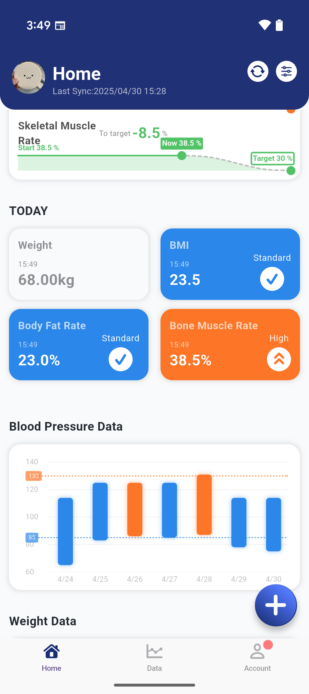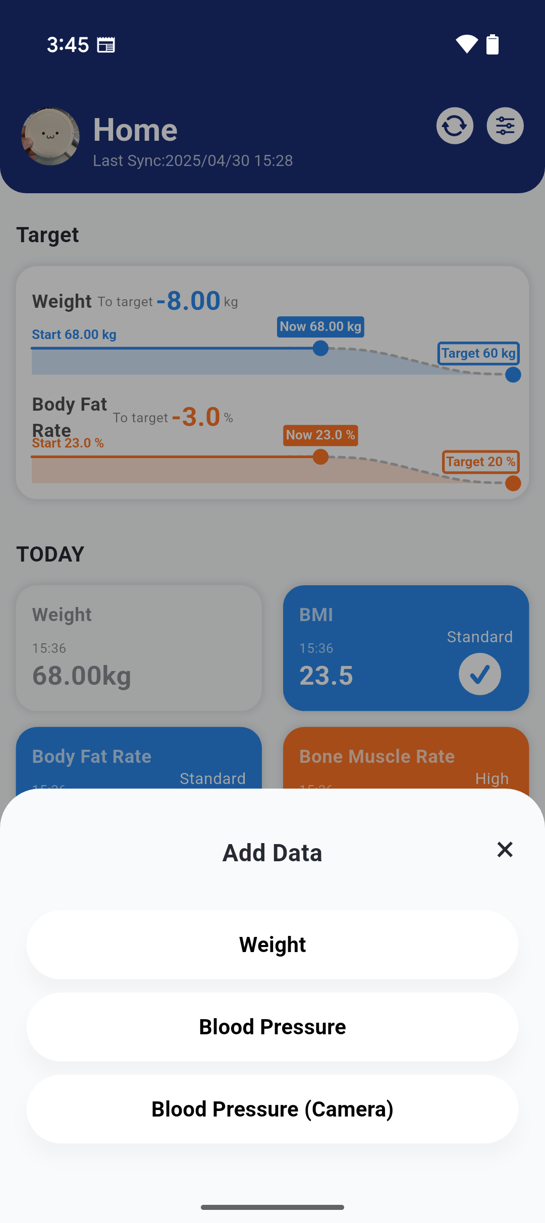 Stand on the body composition analyzer, and after the measurement is complete, you can receive the measurement data by synchronizing it on the home screen of this app. -