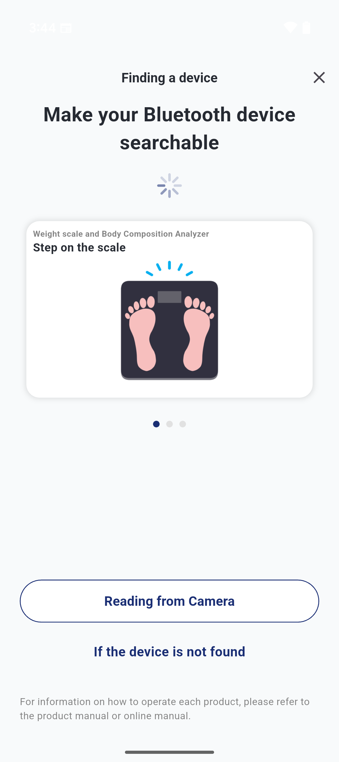 The body composition analyzer can be detected by getting on the body composition analyzer while in the Bluetooth search screen. -