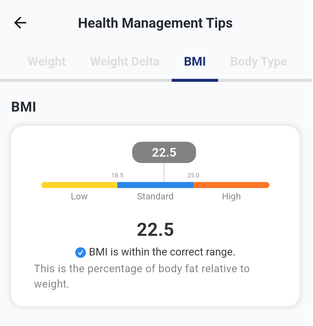 You can check information on each body composition. Explanations of the day's measurement values are also provided for reference in daily health management.