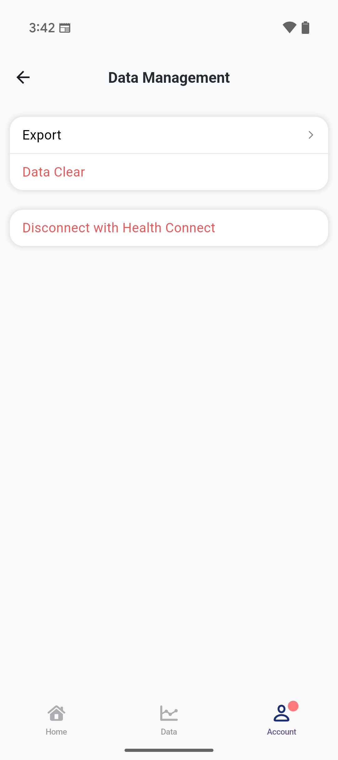 If it is still not reflected after some time, please go to [Account] - [Data Management] and first perform [Unlink from Health Connect], then perform [Link with Health Connect] again.