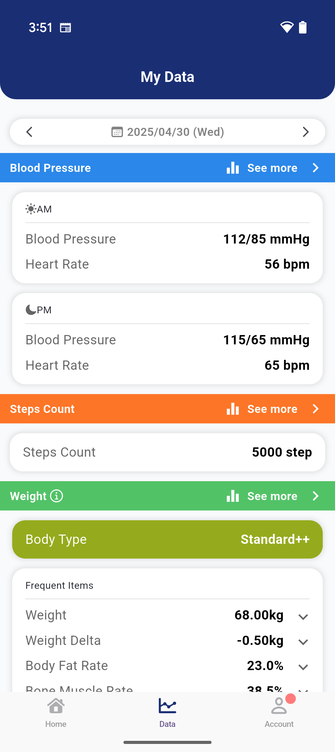 If it is still not reflected after some time, go to [Account] - [Data Management], perform [Unlink from Healthcare], and then perform [Link with Healthcare] again.