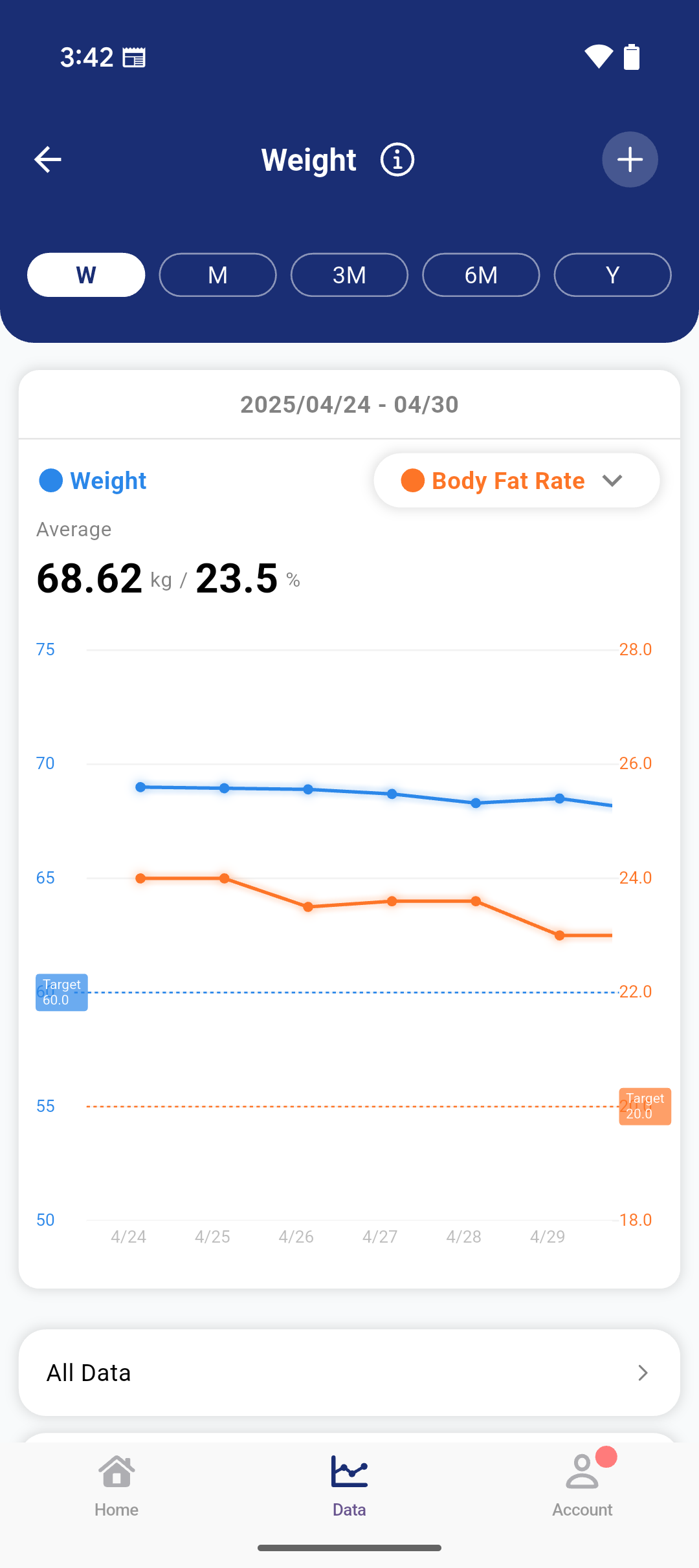 By using a Bluetooth/Wi-Fi body composition analyzer, the measured weight value and body fat percentage can be received and managed by this application.