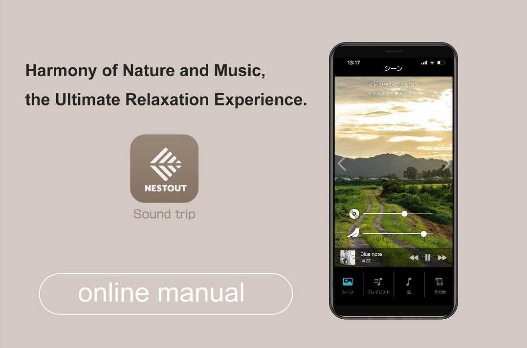 "NESTOUT Sound trip" is a music player application that allows you to enjoy music with environmental sounds suitable for various scenes.